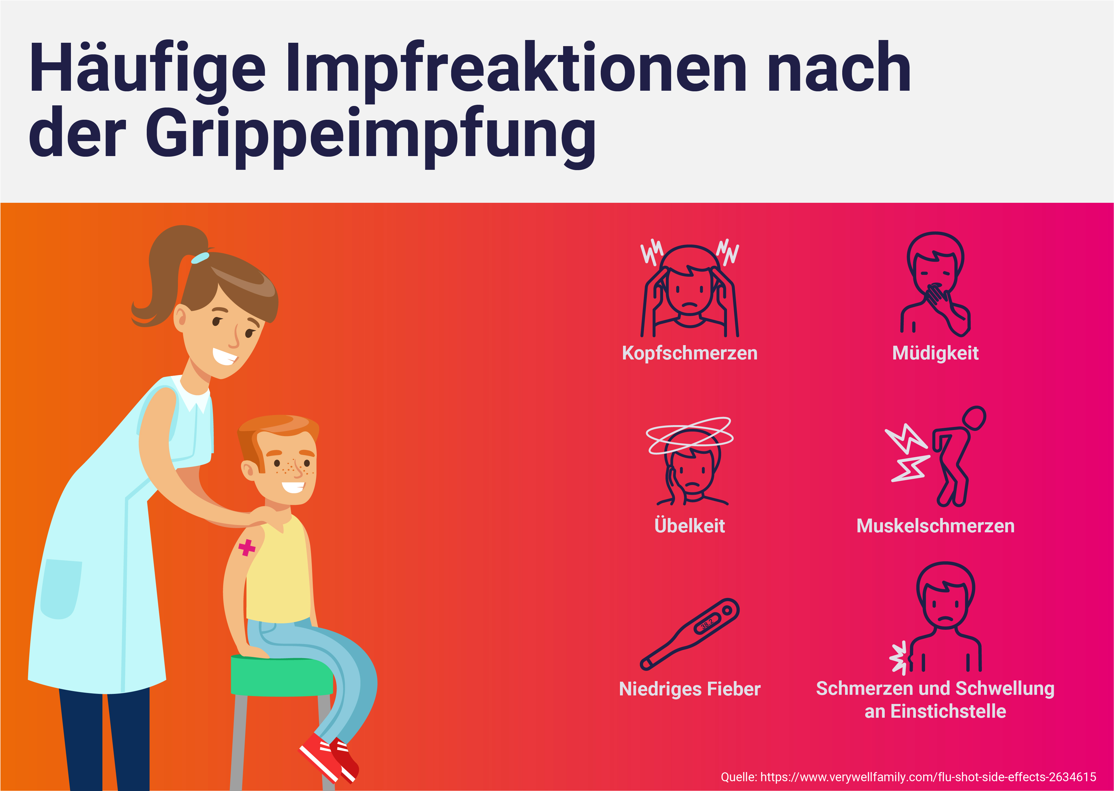 Zeitlich treten diese Impfreaktionen kurz nach dem Impftermin auf. Sie halten zudem nur für wenige Tage an. Insgesamt gibt es aber weder für den Zeitpunkt des Auftretens noch für dessen Länge feste Angaben. Impfreaktionen können bei bis zu etwa 20 Prozent der Impflinge auftreten.1